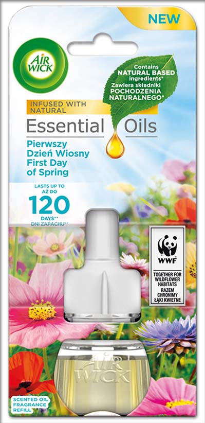 Wkład do elektrycznego odświeżacza powietrza Air Wick Pierwszy Dzień Wiosny wypełni Twój dom zapachem wiosny aż do 120 dni.