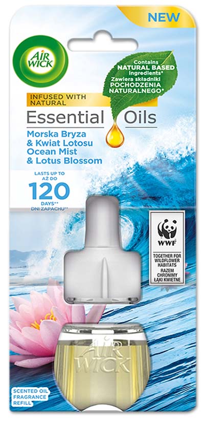 ✔️ Zapach Air Wick Morska Bryza i Kwiat Lotosu należy do kolekcji Essential Oils której kompozycje zapachowe zostały zainspirowane naturalnymi esencjami pochodzącymi z owoców, kwiatów i roślin, aby stworzyć wyjątkowy nastrój w Twoim domu.