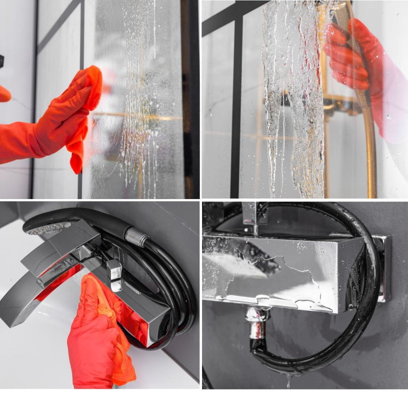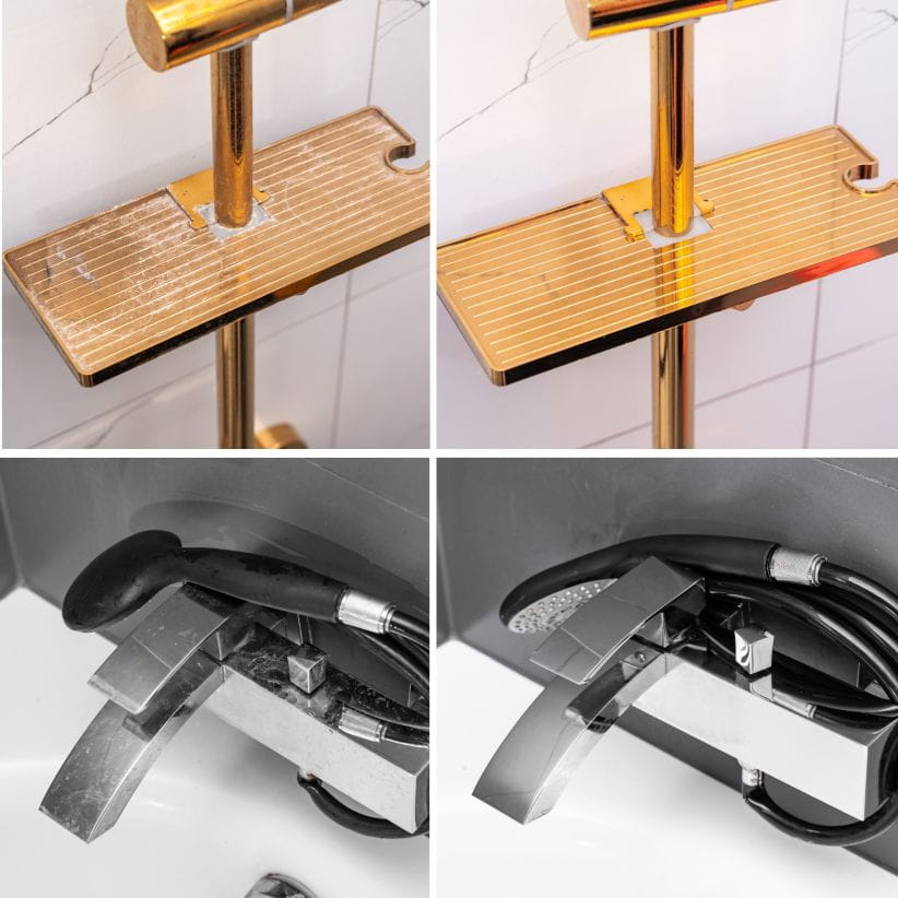 Bezpiecznie i skutecznie usuwa kamień, osady wapienne, mydlane, brud i rdzę z kabin prysznicowych, armatury i ceramiki.
