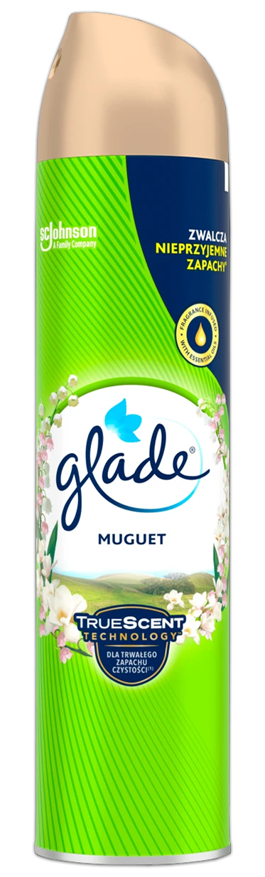 Glade® Muguet to odświeżacz powietrza w aerozolu, który wprowadza do wnętrza świeżość kwitnącej konwalii oraz delikatne nuty kwiatowe. Idealny wybór, gdy chcesz szybko usunąć nieprzyjemne zapachy i zastąpić je aromatem natury.