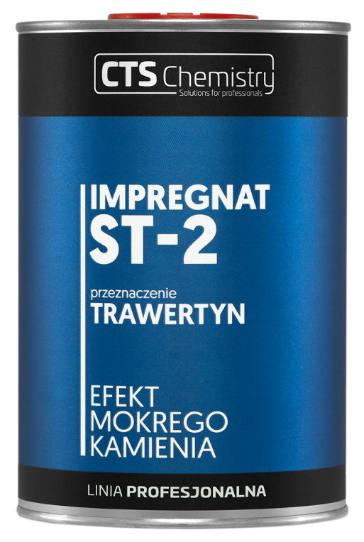 CTS Chemistry ST-2 to profesjonalny impregnat do trawertynu, który długotrwale zabezpiecza powierzchnię przed zabrudzeniami, jednocześnie zmieniając kolor podłoża i nadając efekt mokrego kamienia. Preparat nie zwiększa śliskości i może być stosowany zarówno wewnątrz, jak i na zewnątrz.