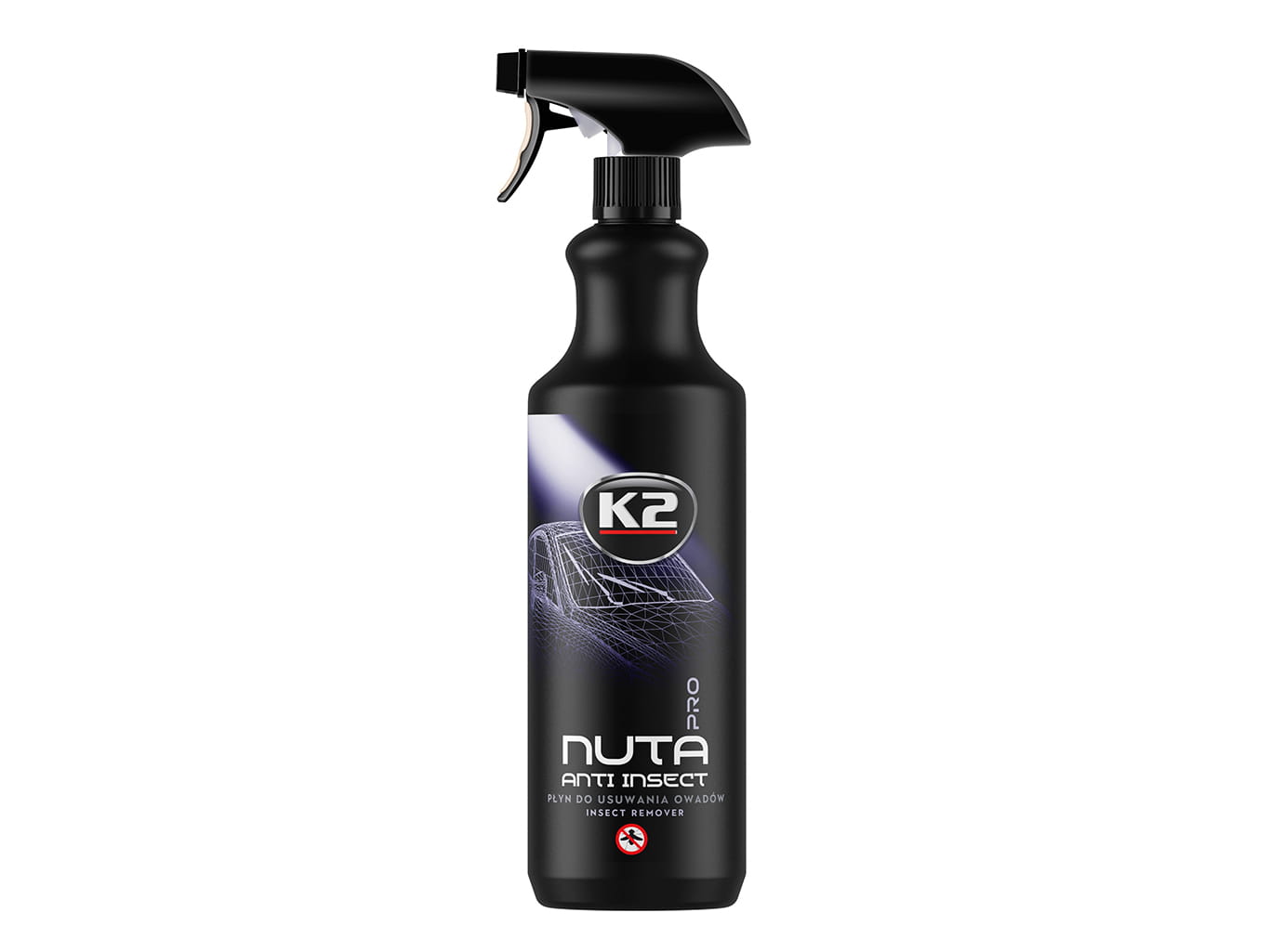 Profesjonalny, bezpieczny i gotowy do użycia środek do usuwania resztek owadów z powierzchni lakieru samochodowego, zderzaków, lusterek oraz reflektorów. Idealnie sprawdza się jako płyn do usuwania owadów z szyb. Zaprojektowany tak, aby wydać i wygrać wojnę z tysiącami owadzich pozostałości, które szpecą wygląd auta. Specjalnie dobrana receptura nie pozostawia szans zaschniętym resztkom po insektach. Aktywne środki czyszczące reagują z białkami i chitynowymi pancerzykami owadów, skutecznie odspajając je od czyszczonej powierzchni. K2 NUTA Anti Insect Pro doskonale sprawdza się również do usuwania ptasich odchodów i innych zanieczyszczeń pochodzenia organicznego. Dzięki użyciu K2 NUTA Anti Insect PRO unikniesz mozolnego szorowania i zdrapywania owadów z lakieru, minimalizując ryzyko zarysowania go. Środek do usuwania owadów z karoserii K2 jest całkowicie bezpieczny dla wszelkich powierzchni, m.in. lakieru, gumy, plastików. Nie narusza powłok ochronnych np. wosków, powłok ceramicznych.