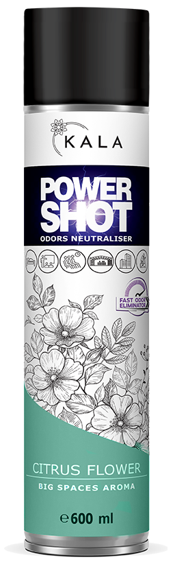 Neutralizator nieprzyjemnych zapachów, odświeżacz Kala POWER SHOT zapach CITRUS FLOWER (600 ml) to zapach, w którego składzie połączyliśmy zapachy kwiatowe oraz cytrusowe. CITRUS FLOWER to bardzo uniwersalny zapach, którego możliwości zastosowania są bardzo szerokie.