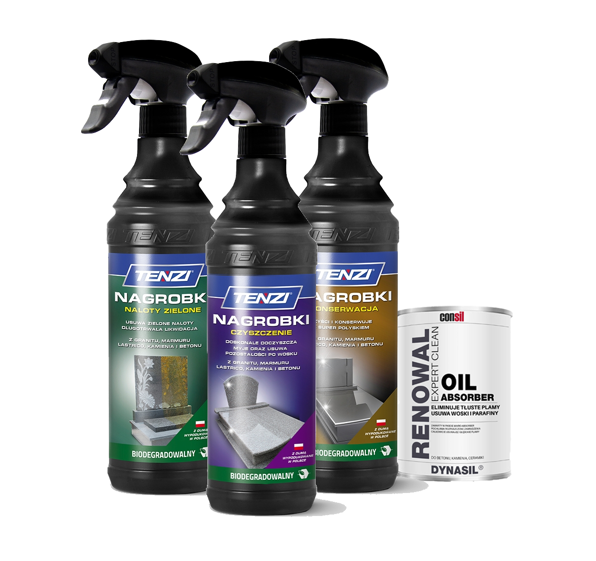 4 profesjonalne preparaty do kompleksowego czyszczenia oraz pielęgnacji nagrobków