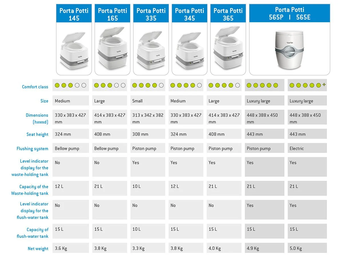 Przenośna toaleta turystyczna Thetford Porta Potti 145 to idealne rozwiązanie gdy nie mamy możliwości skorzystania z tradycyjnej toalety stacjonarnej. Poprzez solidne wykonanie jak i użycie wysokiej jakości tworzywa sztucznego w produktach marki Thetford, toaleta jest wytrzymała i sprawdzi się w każdych warunkach. Zastosowanie nowoczesnych rozwiązań takich jak wbudowany otwór opróżniający z buforem, ułatwia położenie jednego zbiornika na drugim.