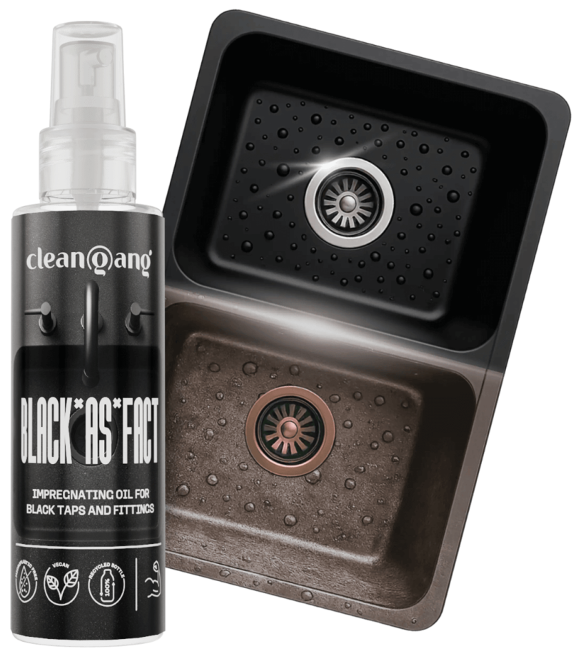 cleangang BLACK*AS*FACT impregnat to specjalistyczny preparat, który pomaga utrzymać elegancki wygląd czarnych zlewów i armatury na dłużej. Tworzy niewidoczną warstwę ochronną bez zmiany koloru i faktury, dzięki czemu czerń pozostaje głęboka i estetyczna. Impregnat ogranicza przywieranie zabrudzeń, ułatwia codzienne czyszczenie i pomaga chronić powierzchnię przed czynnikami, które najczęściej psują efekt „idealnej czerni”.