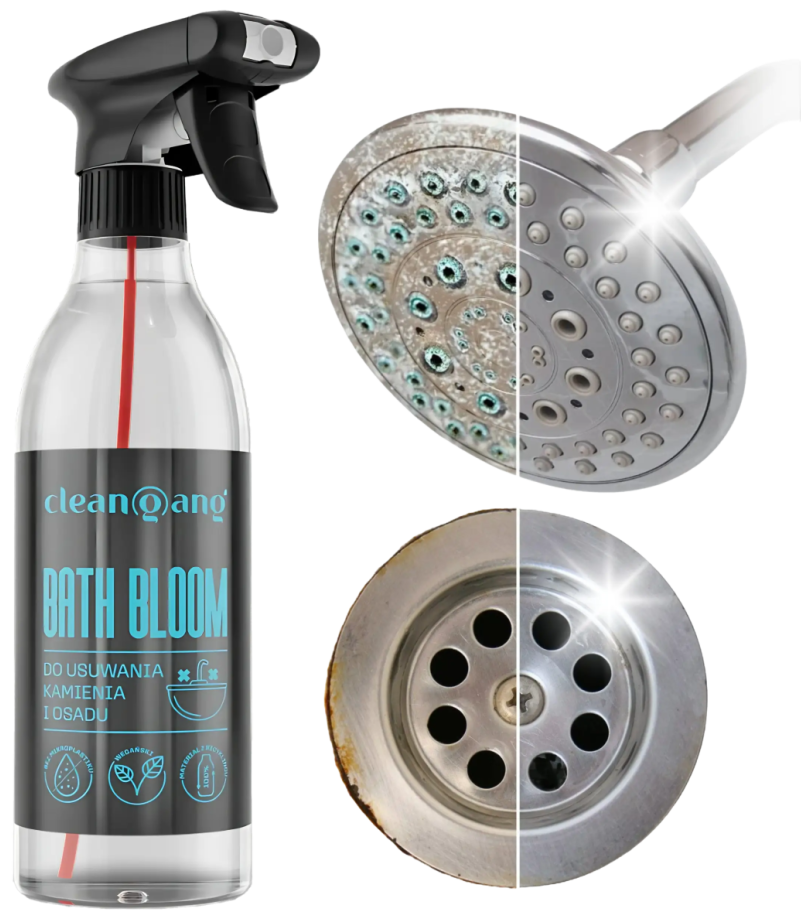 cleangang Bath Bloom to ultraskuteczny płyn do czyszczenia łazienki, który szybko usuwa kamień, osady z wody, pozostałości po środkach myjących oraz typowe zabrudzenia pojawiające się na armaturze i ceramice.