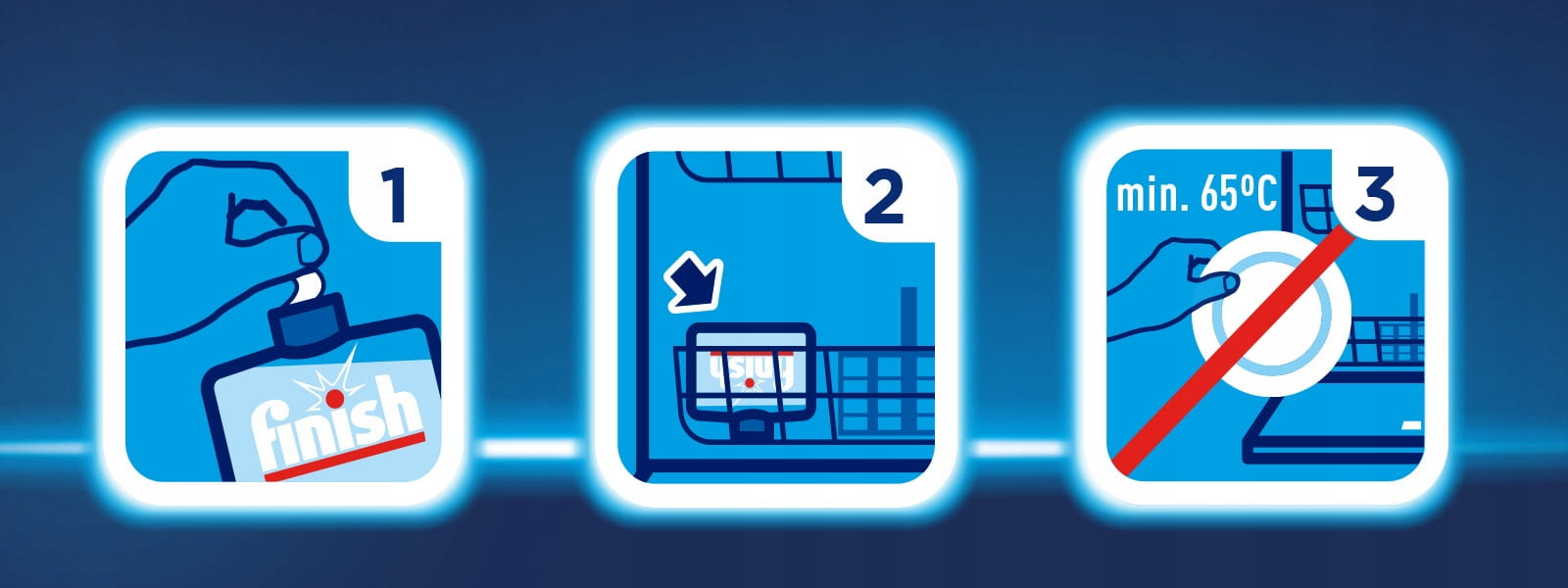 - Korzystanie z naszego płynu to czynność niezwykle prosta. Wystarczy odkleić górną nalepkę z zakrętki produktu i włożyć jedno opakowanie do pustej zmywarki, a następnie uruchomić program mycia w wyższej temperaturze (bez naczyń). Nasz płyn gwarantuje 100% skuteczności czyszczenia.