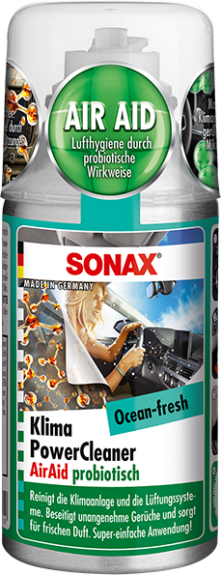 SONAX A/C Power Cleaner Ocean Fresh to profesjonalny preparat do czyszczenia i odświeżania układów klimatyzacji, nawiewów oraz wnętrz pojazdów. Usuwa uciążliwe zapachy i pozostawia świeży, przyjemny aromat Ocean Fresh. Produkt wykorzystuje nowoczesną bio-formułę opartą na żywych kulturach „dobrych” bakterii, które wypierają mikroorganizmy odpowiedzialne za powstawanie brzydkich zapachów. Dzięki temu działa skuteczniej niż preparaty maskujące.